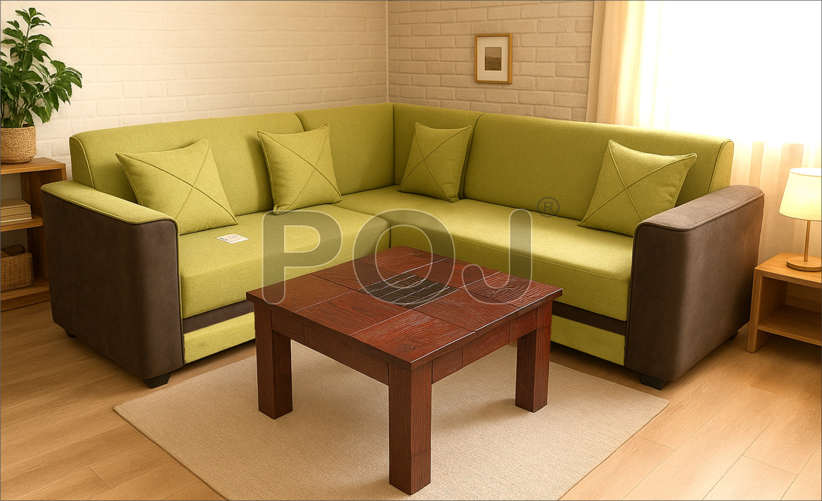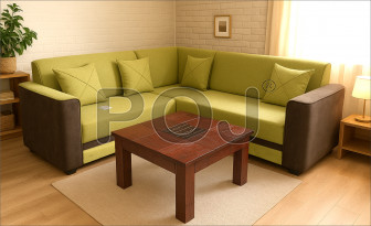 Elevate your living space with the stylish and functional Arena Corner Sofa. Designed with a modern L-shape, this sofa provides maximum seating comfort while saving space. Upholstered in a vibrant green fabric with soft cushioning and matching throw pillows, it brings a refreshing touch to any interior. The contrasting dark brown armrests add a premium appeal, while the sturdy frame ensures durability for everyday use. Perfect for family gatherings, cozy evenings, or contemporary homes, the Arena Corner Sofa blends comfort with elegance.