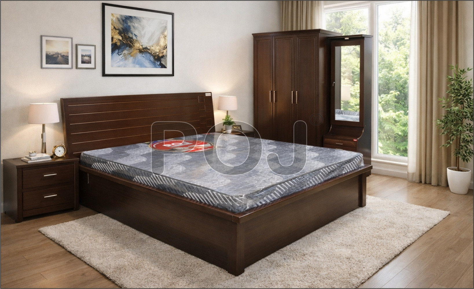 Bring timeless elegance and everyday comfort to your bedroom with this premium wooden bedroom set. Crafted with a rich dark wood finish, this set adds a warm, luxurious feel while maintaining a clean and modern look. The sturdy bed features a strong frame with a spacious box storage design, making it ideal for keeping your bedroom organized without compromising on style.
