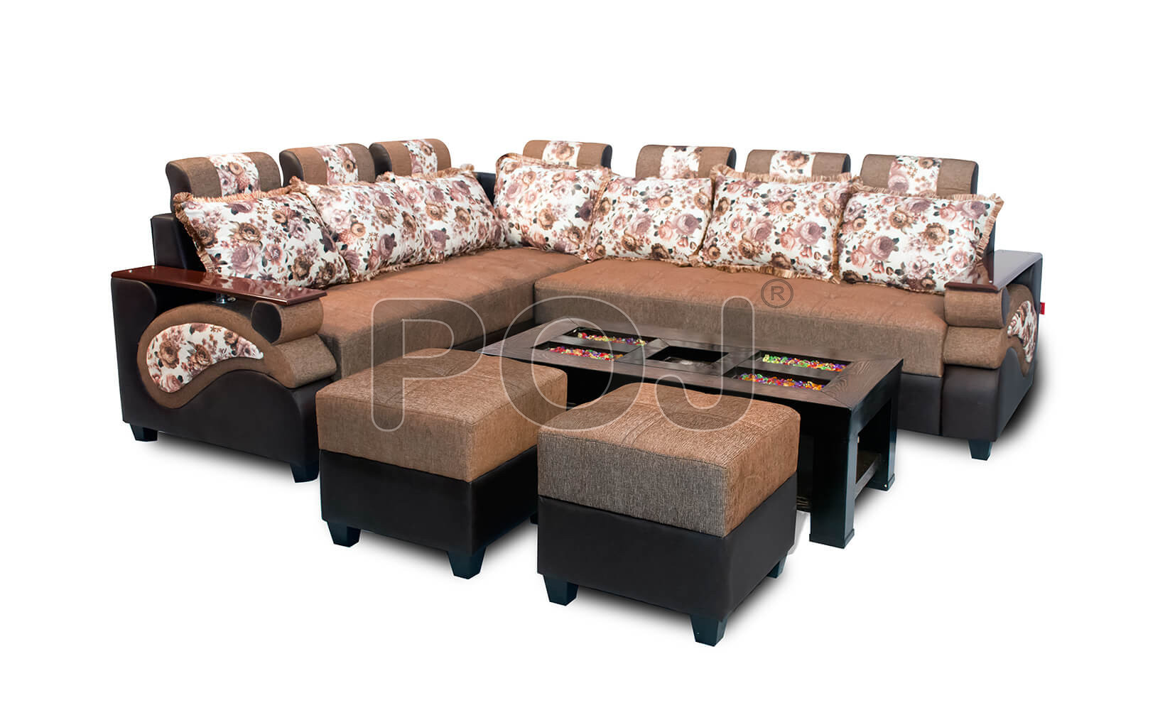 Best part with this furniture set is that you get 2 cushioned pouffes and also letting you customize this set in both left and right corner arrangement.