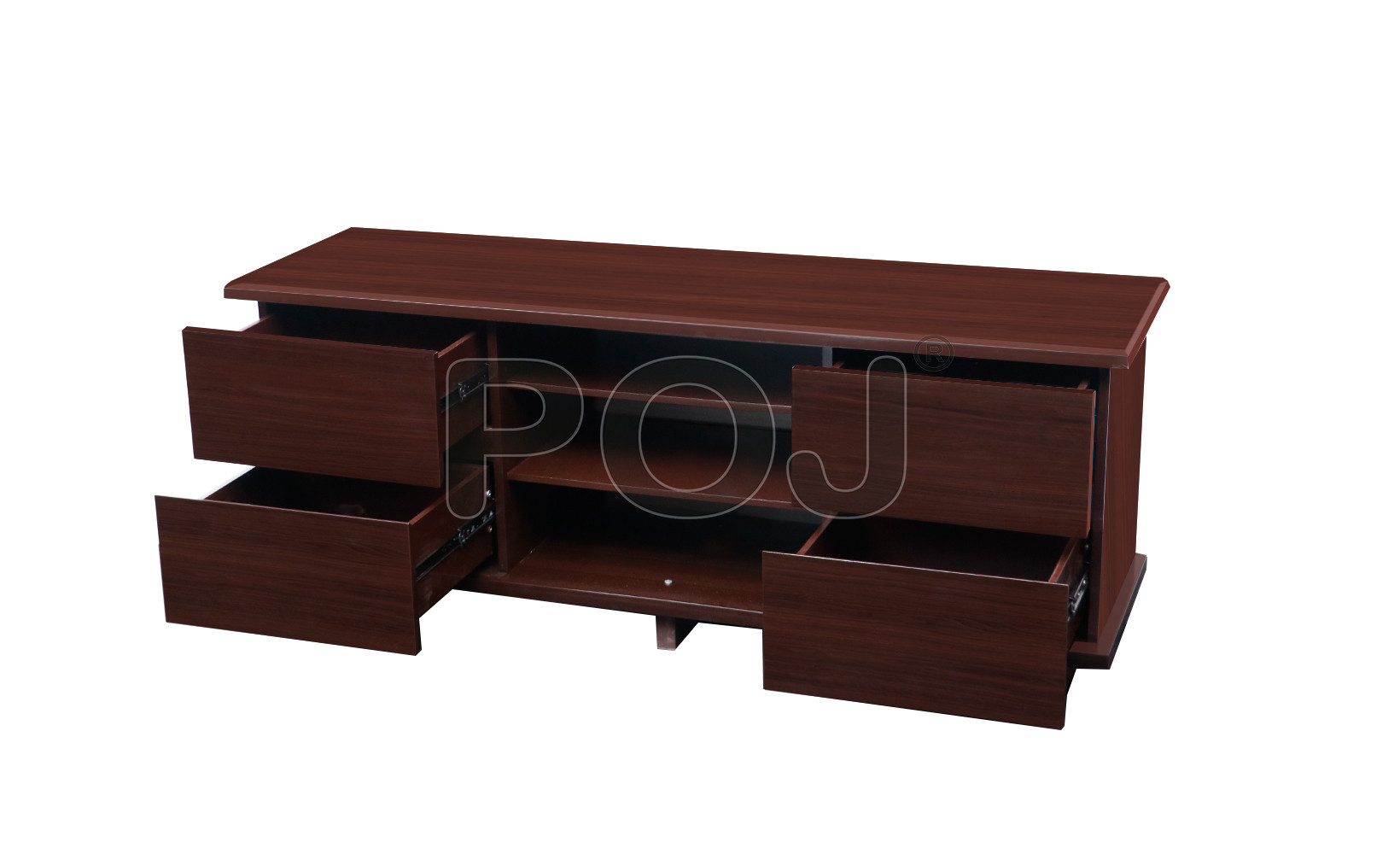 It is made from high quality MDF board which is truly borer proof and water resistant. It flaunts a beautiful stain-free PU polished surface and has 2 doors transparent tempered glass storage opening, which is equipped with magnetic locks. The presence of 4 channelized drawers gives ample storage for all your curios and media accessories.